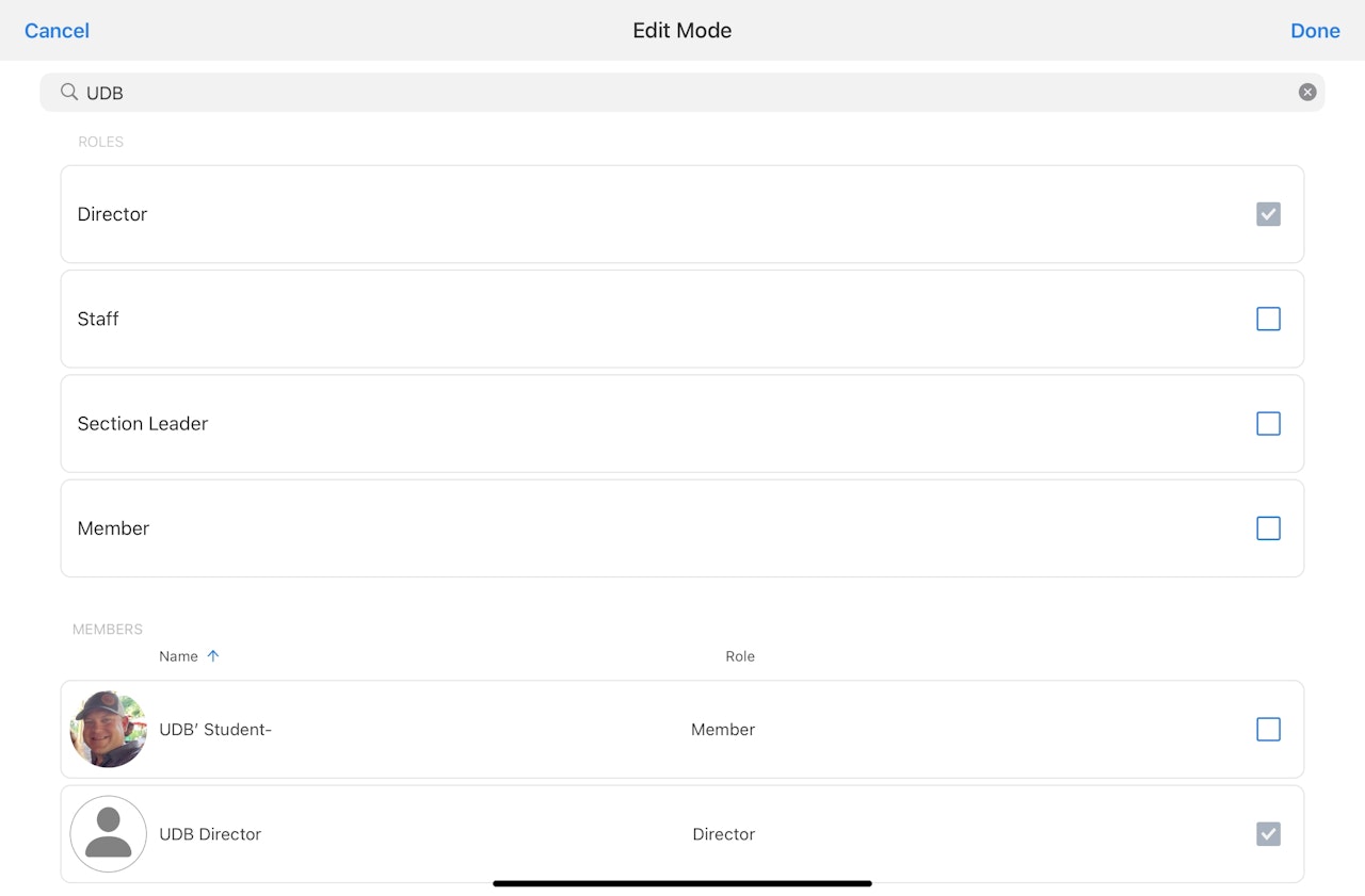 Toggle on Edit Mode and assign those that you want to have this functionality by tapping 'Invitees' and selecting either individuals or entire groups of users based on their assigned role. Edit Mode can be turned on or off at any point by a director.